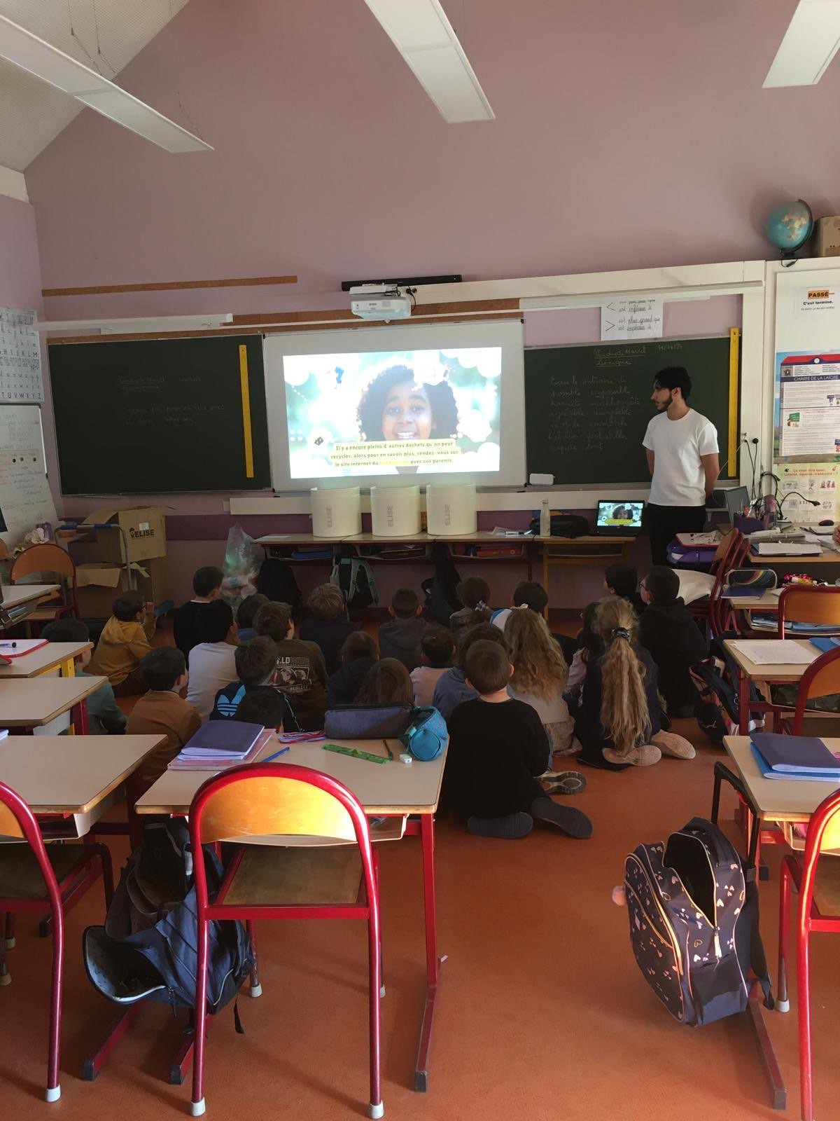- 2 séances de sensibilisation au recyclage et au réemploi des déchets (dont le contenu des poubelles jaunes).